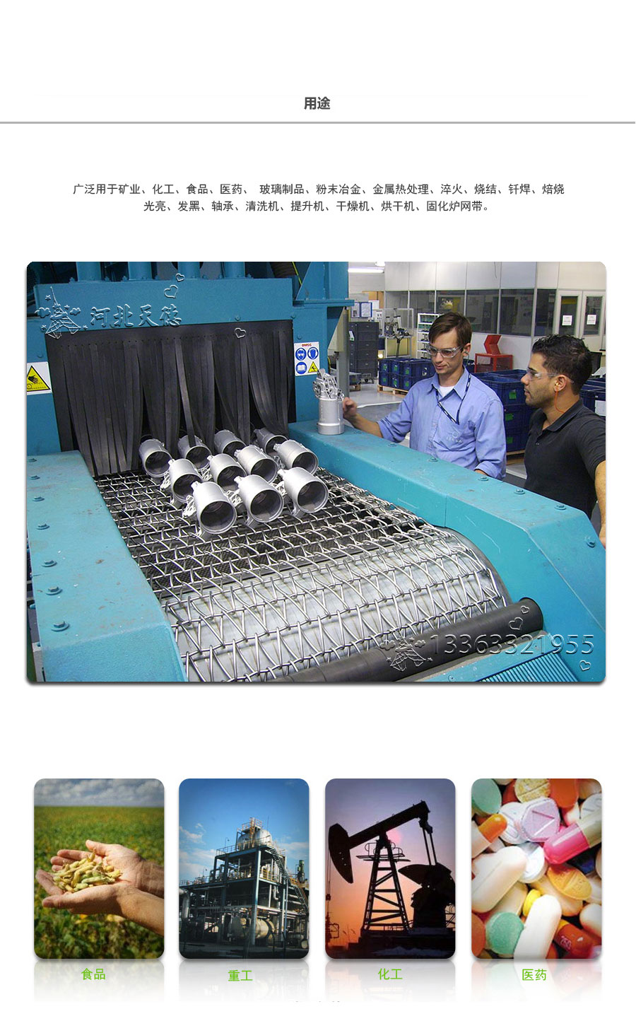 雙旋輸送帶:由左右交替的網(wǎng)條通過軋花串條聯(lián)結(jié)而成,集中了金屬絲編織網(wǎng)帶的各種優(yōu)點(diǎn),由于具有彎曲較深的串條,使各個(gè)螺旋盤條的位置取得正確的定位,因此可以減少網(wǎng)帶的變型和延伸。 雙旋輸送帶材質(zhì):不銹鋼201、不銹鋼304、不銹鋼316、不銹鋼316L、普通鋼絲、普通鐵絲、耐高溫不銹鋼、耐酸不銹鋼 雙旋輸送帶用途:廣泛用于石油、冶金、食品加工機(jī)械、制藥、玻璃、印制線路板等輸送設(shè)備。